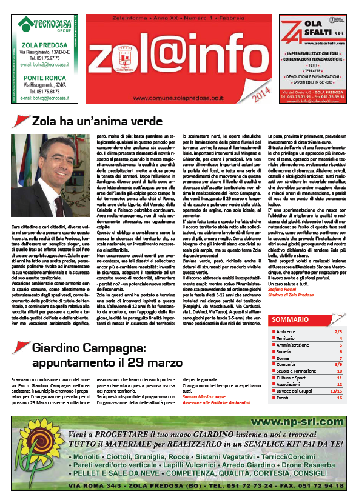 Zola Informa n. 1/14 Anno XX - Numero 1 - febbraio 2014 | Chiuso in tipografia il 24 febbraio 2014 Clicca per vedere l'immagine alle dimensioni originali… Dimensione: 676KB