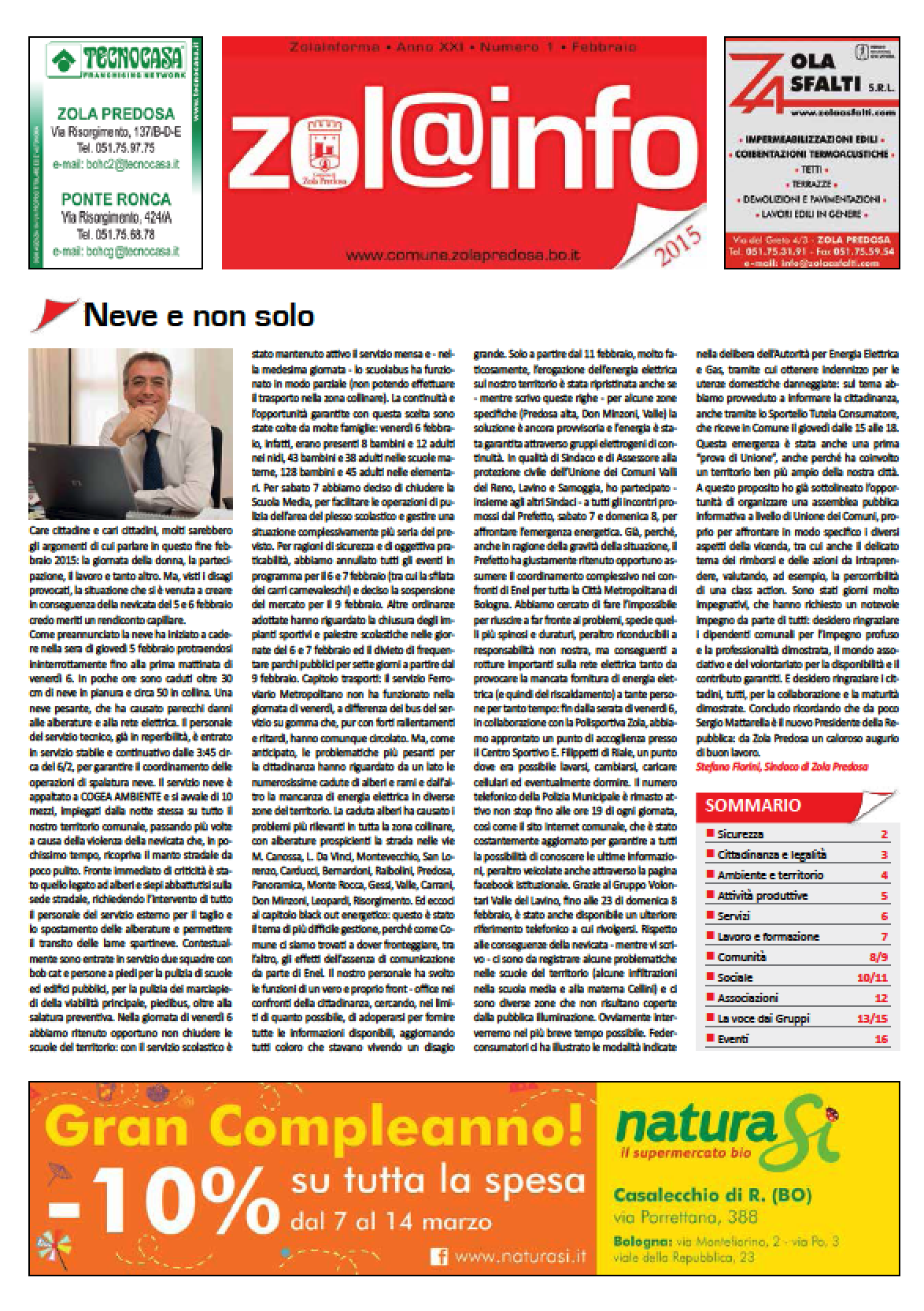 Zola Informa n. 1/15 Anno XX - Numero 1 - febbraio 2015 | Chiuso in tipografia il 23 febbraio 2015 Clicca per vedere l'immagine alle dimensioni originali… Dimensione: 798KB