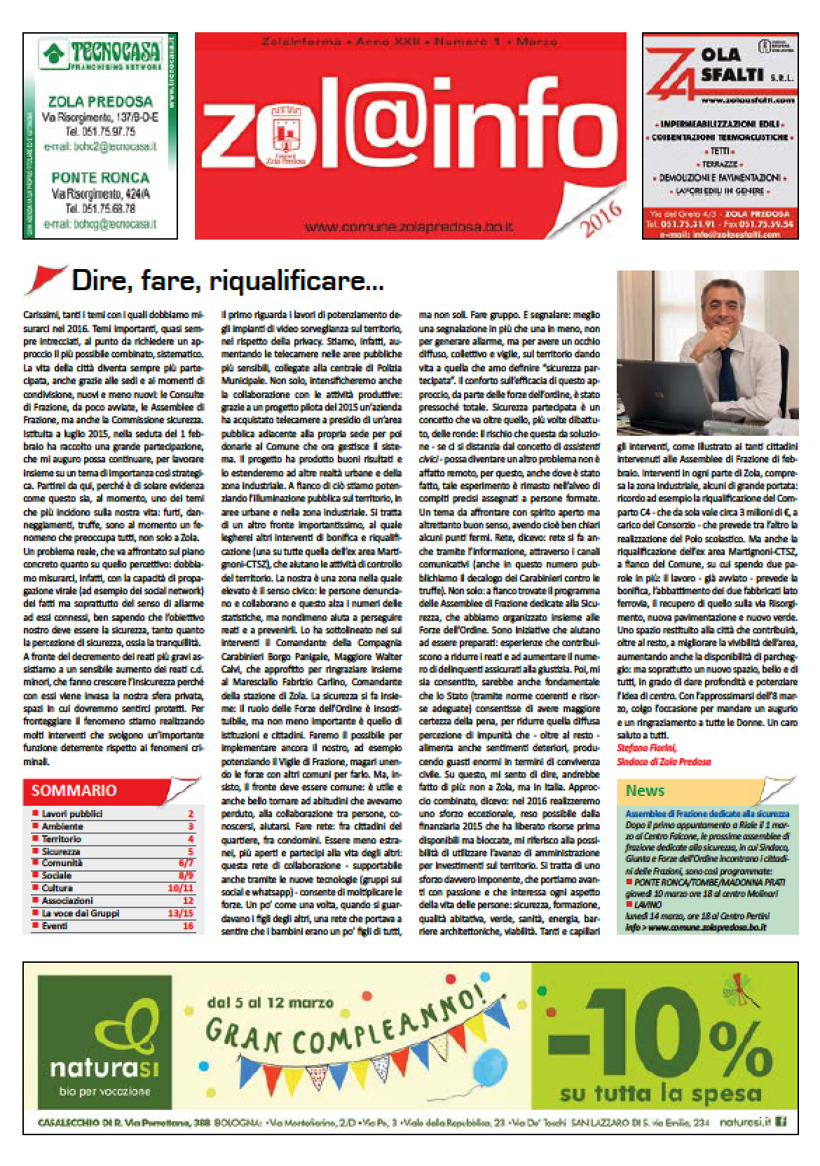 Zola Informa n. 1/16 Anno XX - Numero 1 - marzo 2016 | Chiuso in tipografia il 24 febbraio 2016 Clicca per vedere l'immagine alle dimensioni originali… Dimensione: 807KB