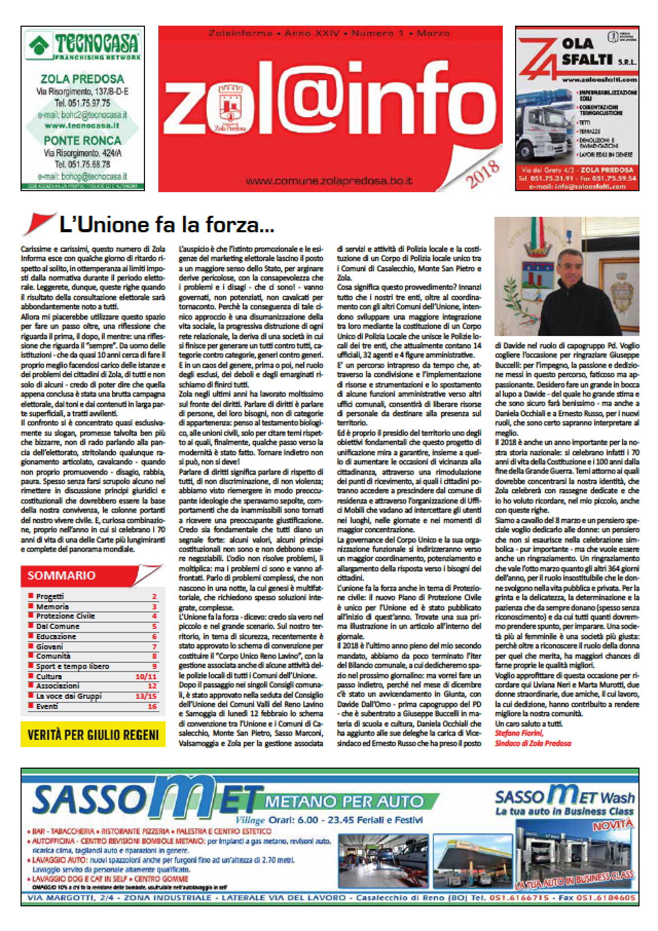 Zola Informa n. 1/18 Anno XXIV - Numero 1 - marzo 2018 | Chiuso in tipografia il 28 febbraio Clicca per vedere l'immagine alle dimensioni originali… Dimensione: 972KB