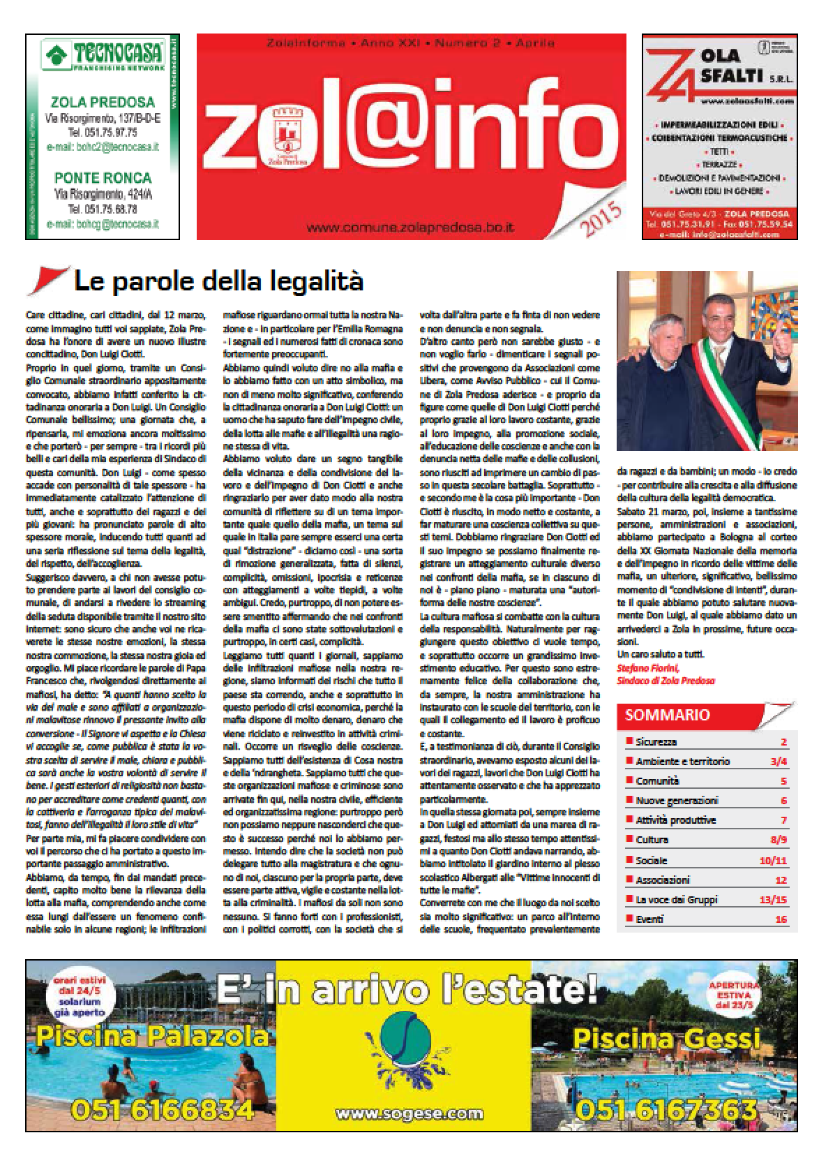 Zola Informa n. 2/15 Anno XX - Numero 2 - maggio 2015 | Chiuso in tipografia il 24 aprile 2015 Clicca per vedere l'immagine alle dimensioni originali… Dimensione: 826KB