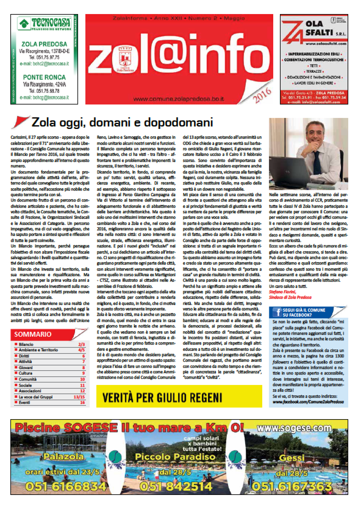 Zola Informa n. 2/16 Anno XX - Numero 2 - maggio 2016 | Chiuso in tipografia il 2 maggio 2016 Clicca per vedere l'immagine alle dimensioni originali… Dimensione: 845KB