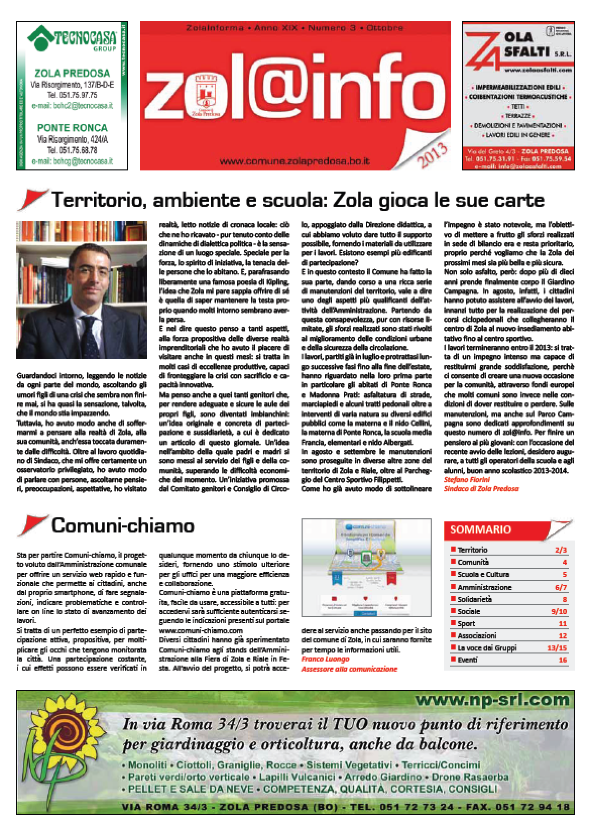 Zola Informa n. 3/13 Anno XX - Numero 3 - settembre/ottobre 2013 | Chiuso in tipografia il 23 settembre 2013 Clicca per vedere l'immagine alle dimensioni originali… Dimensione: 702KB