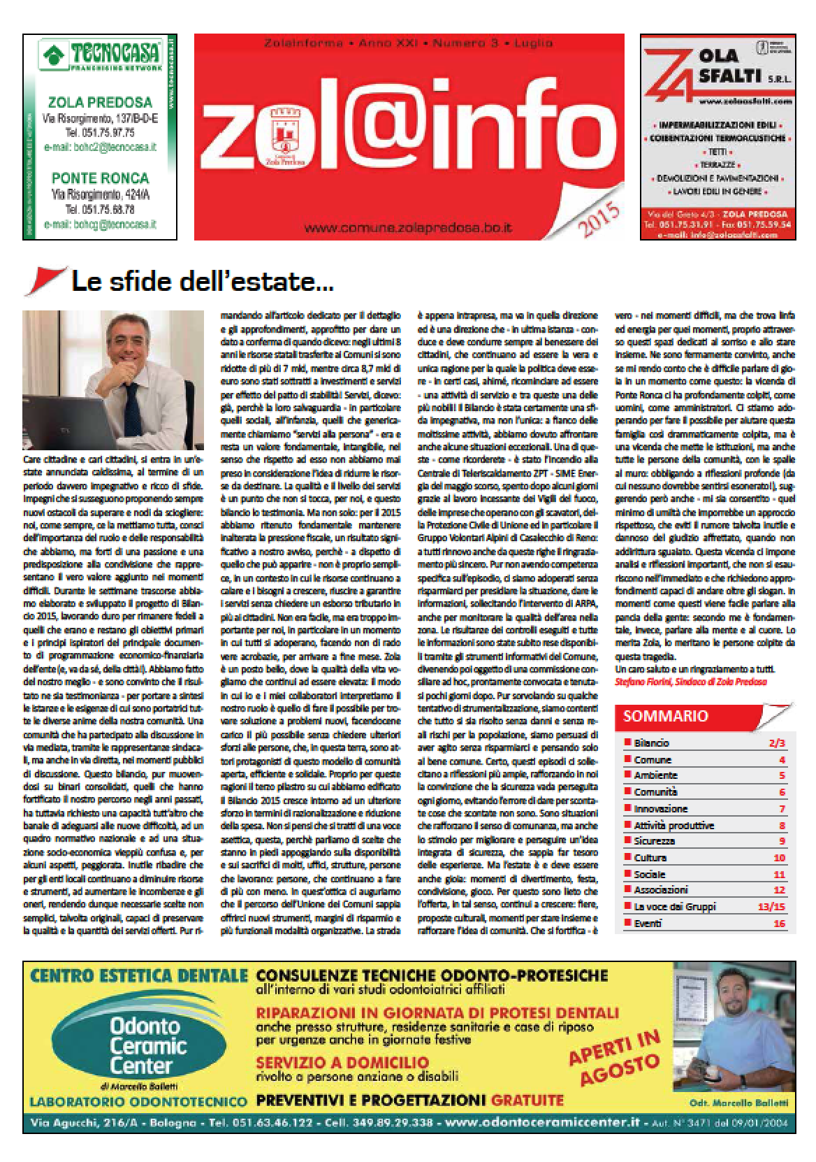Zola Informa n. 3/15 Anno XX - Numero 3 - luglio 2015 | Chiuso in tipografia il 30 giugno 2015 Clicca per vedere l'immagine alle dimensioni originali… Dimensione: 829KB