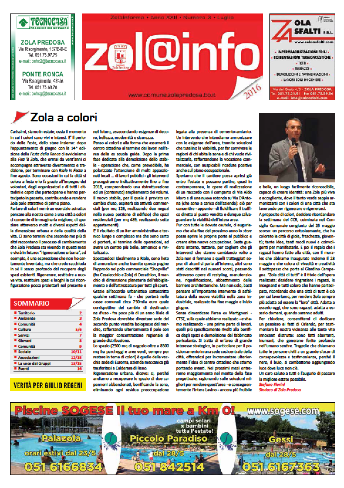 Zola Informa n. 3/16 Anno XX - Numero 3 - luglio 2016 | Chiuso in tipografia il 29 giugno 2016 Clicca per vedere l'immagine alle dimensioni originali… Dimensione: 833KB