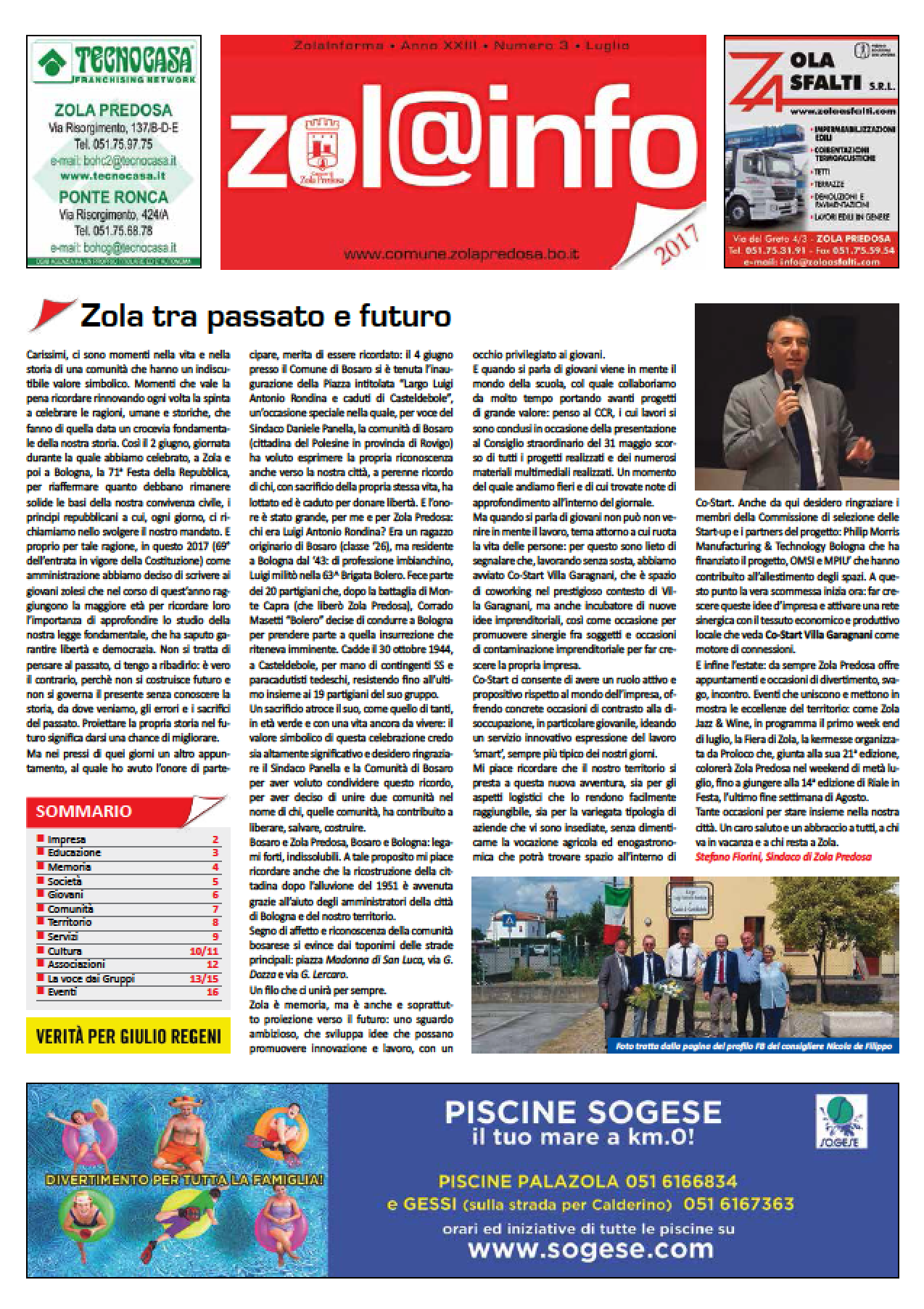 Zola Informa n. 3/17 Anno XX - Numero 3 - luglio 2017 | Chiuso in tipografia il 26 giugno Clicca per vedere l'immagine alle dimensioni originali… Dimensione: 986KB