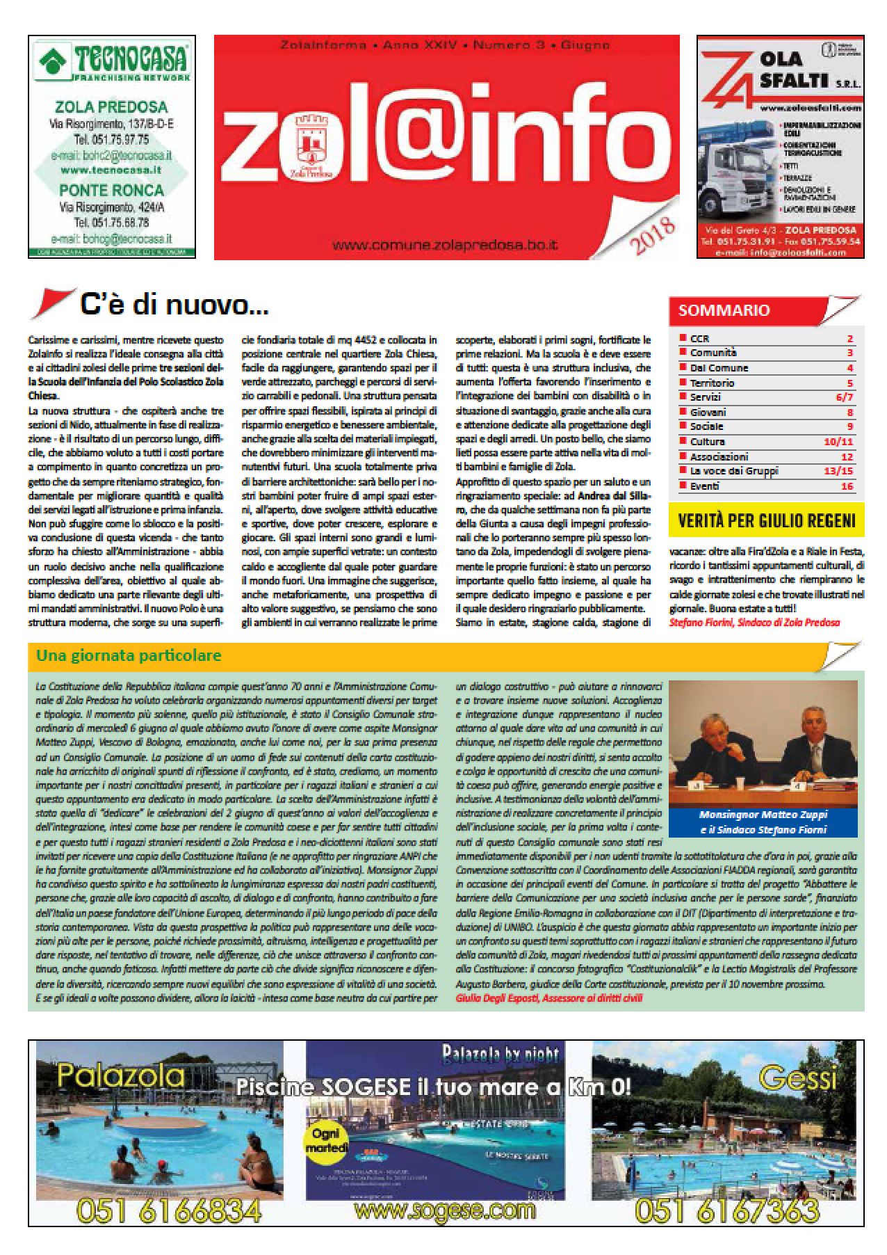 Zola Informa n. 3/18 Anno XXIV - Numero 3 - giugno 2018 | Chiuso in tipografia il 19 giugno Clicca per vedere l'immagine alle dimensioni originali… Dimensione: 950KB