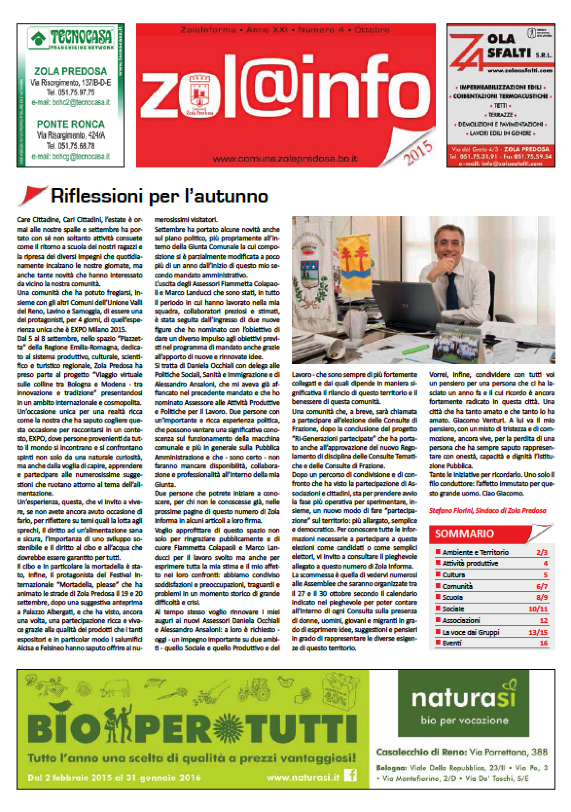 Zola Informa n. 4/15 Anno XX - Numero 4 - ottobre 2015 | Chiuso in tipografia il 29 settembre 2015 Clicca per vedere l'immagine alle dimensioni originali… Dimensione: 783KB