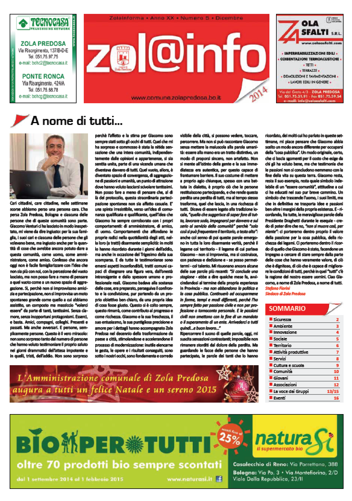 Zola Informa n. 5/14 Anno XX - Numero 5 - dicembre 2014 | Chiuso in tipografia il 1 dicembre 2014 Clicca per vedere l'immagine alle dimensioni originali… Dimensione: 674KB