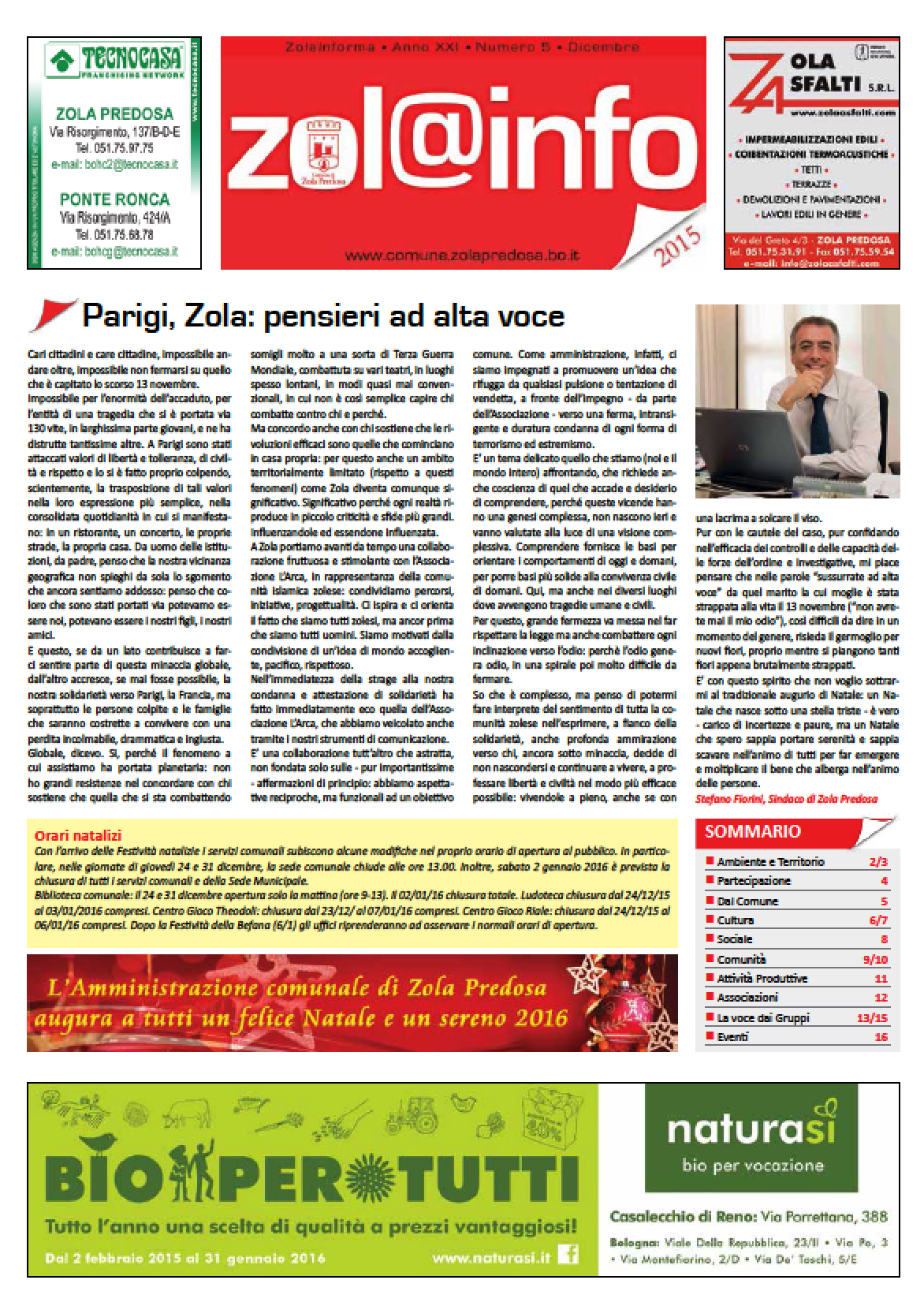 Zola Informa n. 5/15 Anno XX - Numero 5 - dicembre 2015 | Chiuso in tipografia il 27 novembre 2015 Clicca per vedere l'immagine alle dimensioni originali… Dimensione: 775KB