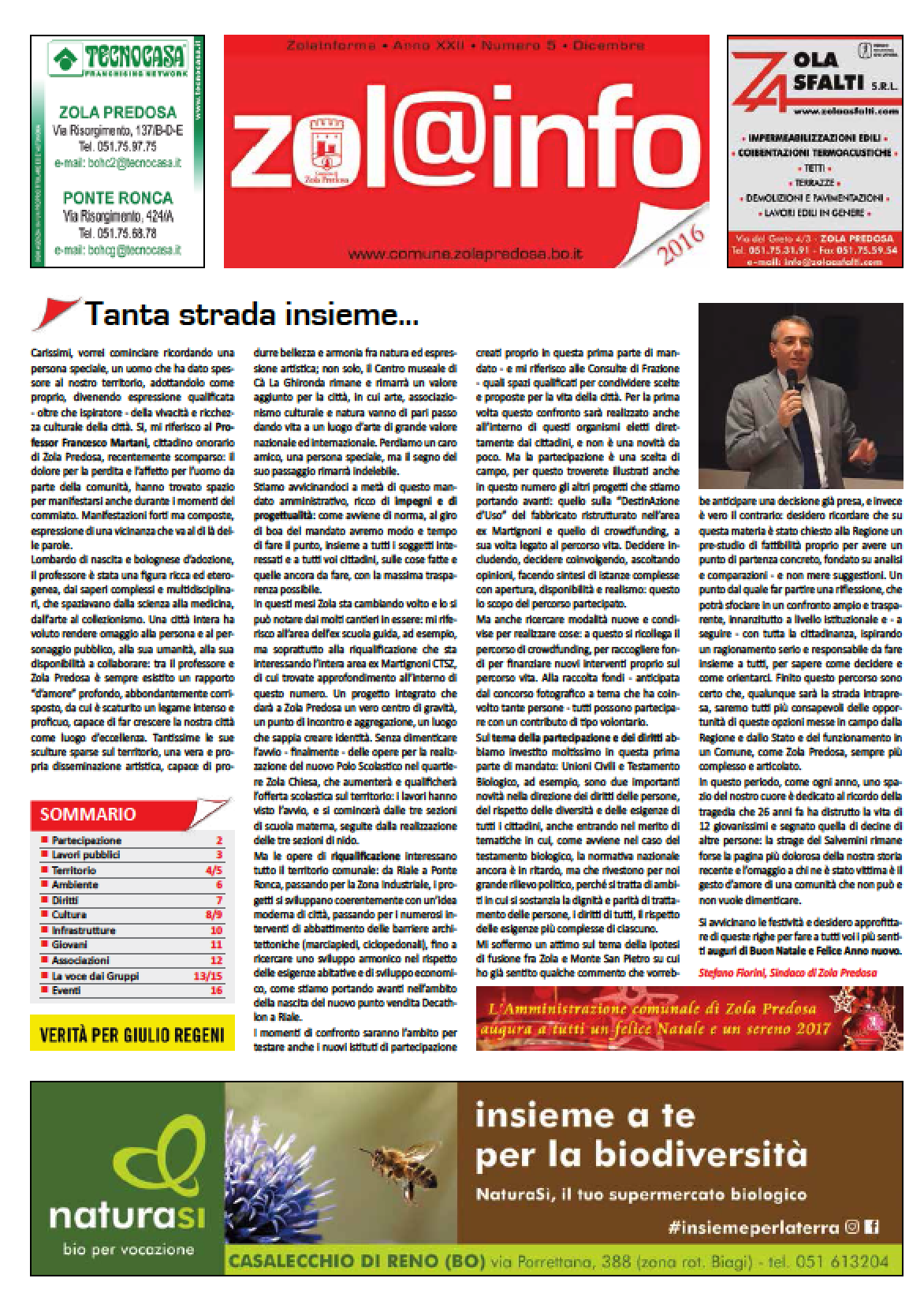 Zola Informa n. 5/16 Anno XX - Numero 5 - dicembre 2016 | Chiuso in tipografia il 30 novembre 2016 Clicca per vedere l'immagine alle dimensioni originali… Dimensione: 768KB