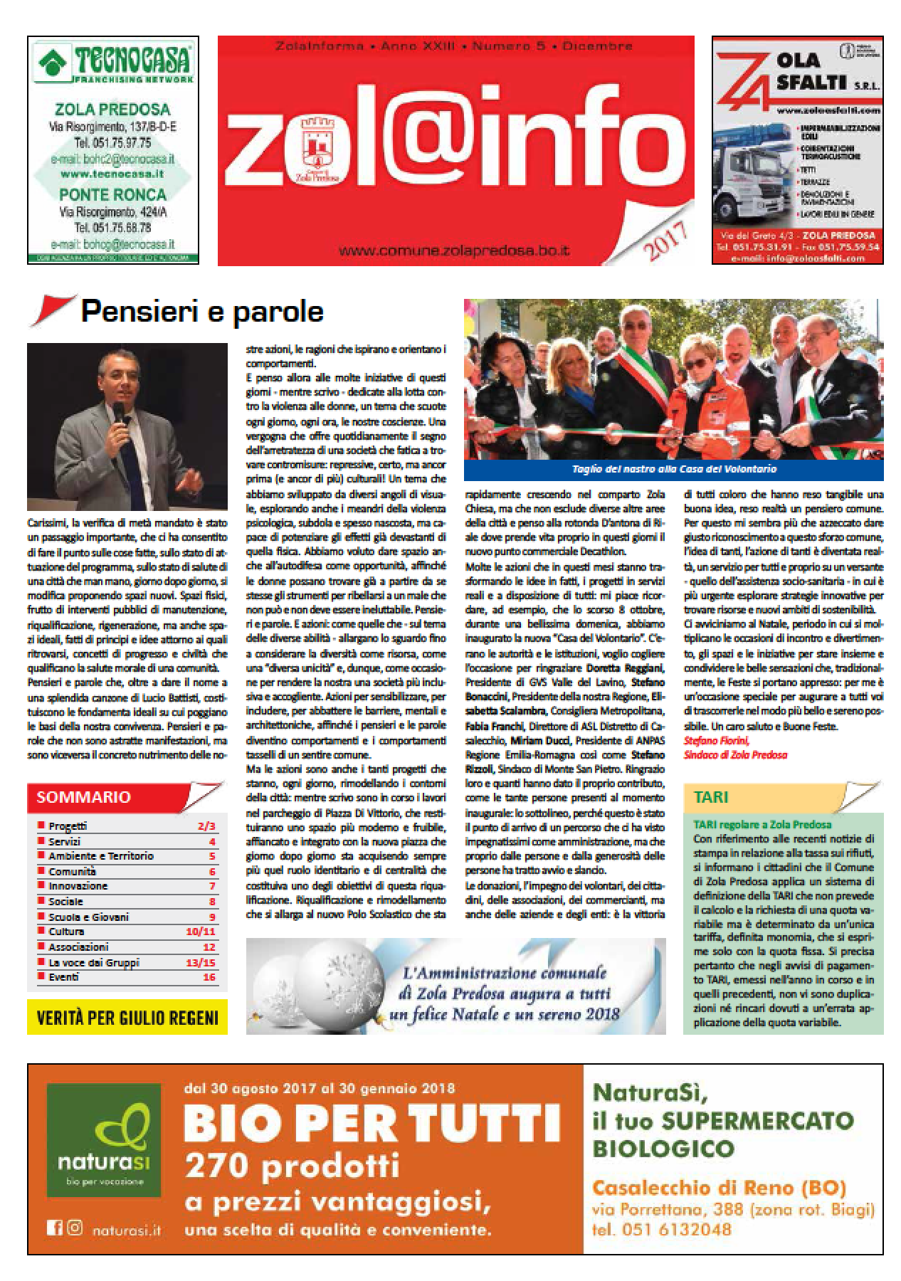 Zola Informa n. 5/17 Anno XX - Numero 5 - novembre/dicembre 2017 | Chiuso in tipografia il 24 novembre Clicca per vedere l'immagine alle dimensioni originali… Dimensione: 970KB